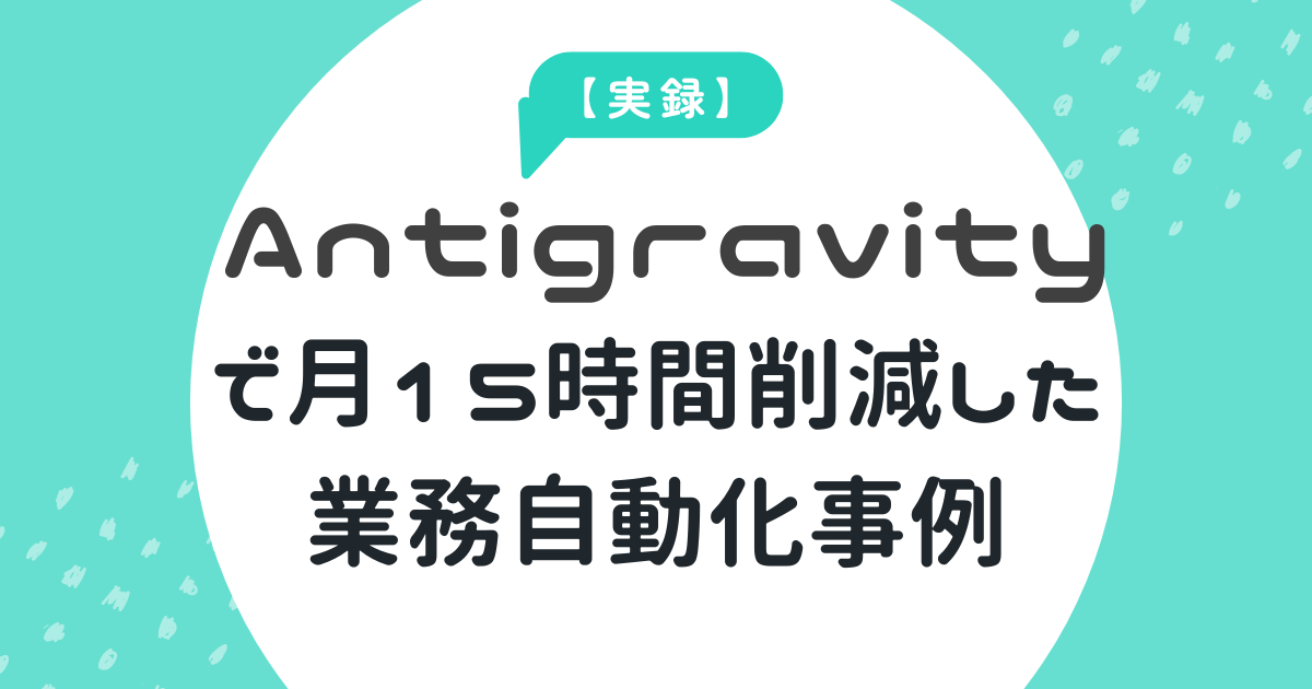 ARCHIVES 2025年12月 ChatGPTで問い合わせ対応を50%削減する方法 2025.12.31 ChatGPT活用 progmraming 未経験からのプログラミング上達ガイド 【5分で完成】ChatGPTで社内マニュアルを作成する方法 2025.12.31 IT・テクノロジー progmraming 未経験からのプログラミング上達ガイド 【5分で完成】AntigravityでGoogle Apps Scriptを作る方法 2025.12.31 IT・テクノロジー progmraming 未経験からのプログラミング上達ガイド 【初心者必見】Google Antigravityとは?総務担当者が知るべき基礎知識 2025.12.31 業務効率化・自動化 progmraming 未経験からのプログラミング上達ガイド 【実録】Antigravityで月15時間削減した業務自動化事例 2025.12.31 業務効率化・自動化 progmraming 未経験からのプログラミング上達ガイド 【2025年版】総務で使える無料ツール10選|予算ゼロで業務効率化 2025.12.31 ChatGPT活用 progmraming 未経験からのプログラミング上達ガイド 【実録】ペーパーレス化で月15時間削減した方法 2025.12.31 業務効率化・自動化 progmraming 未経験からのプログラミング上達ガイド 総務の仕事でストレスを溜めない方法 2025.12.31 業務効率化・自動化 progmraming 未経験からのプログラミング上達ガイド 総務業務で使える時間管理テクニック7選 2025.12.31 業務効率化・自動化 progmraming 未経験からのプログラミング上達ガイド 【無料AI活用】総務業務効率化アイデア10選|月48時間削減の具体的手法 2025.12.31 業務効率化・自動化 progmraming 未経験からのプログラミング上達ガイド もっと見る