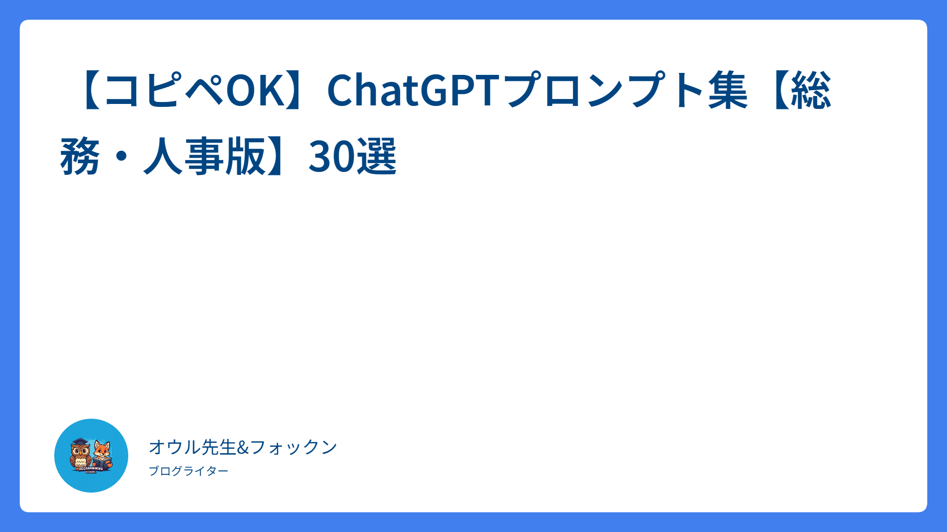 🦉 オウル先生「大丈夫です。ChatGPTを使えば、構成から文章まで、一瞬で作成できますよ」